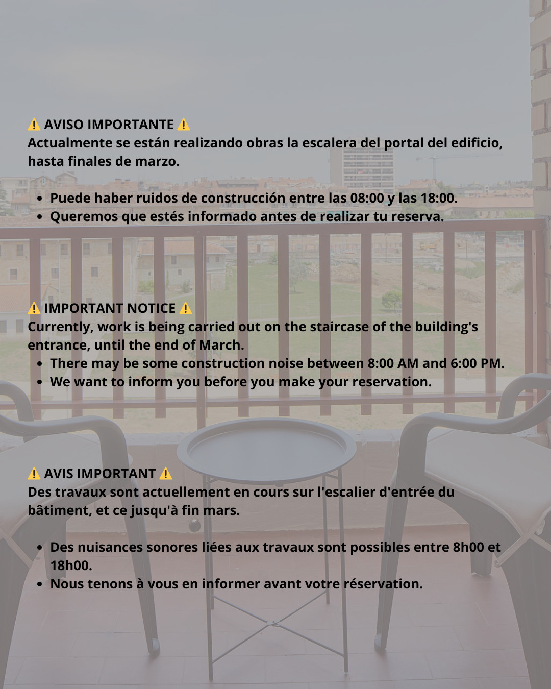 OBRAS EN EL PORTAL HASTA FINALES DE MARZO, POSIBLE RUIDO.